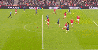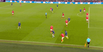 第41分钟,穆里略后场造作,转会费7600万欧元的哲凯赖什,绝佳单刀契机被回追封堵。