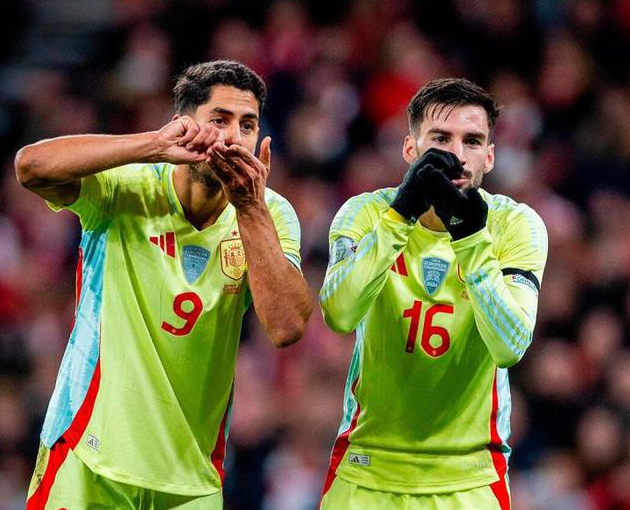 西班牙首发:1-拉亚、2-波罗、5-维维安、14-拉波尔特、17-库库雷利亚、18-祖比门迪(70' 15-卡萨多)、10-奥尔莫(70' 11-尼科-威廉姆斯)、6-梅里诺(80' 20-佩德里)、21-奥亚萨瓦尔、9-阿约泽(69' 7-莫拉塔)、16-巴埃纳(62' 8-法比安)